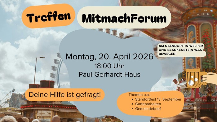 Herzliche Einladung zum nächsten Mitmach-Forum; ein Treffen für alle, denen der Standort Welper-Blankenstein am Herzen liegt und die sich einbringen wollen!